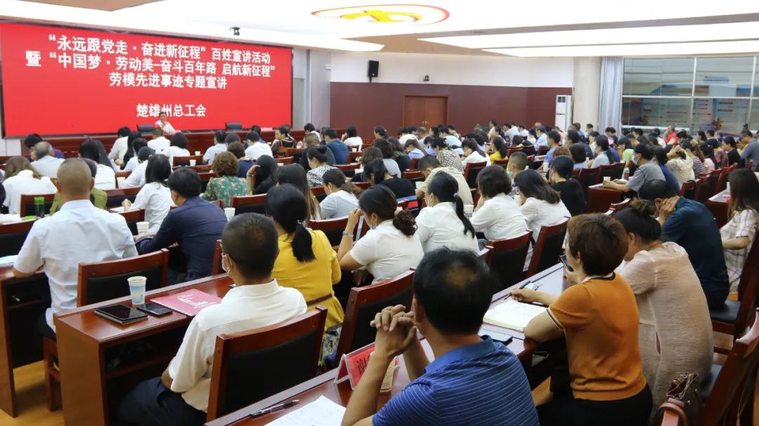 一送思想文化。利用工人文化宫区位优势,建成楚雄市新时代文明实践中心、楚雄市党群活动服务中心、楚雄市职工服务中心,创设“职工讲堂”“历史成就展厅”“楚雄铸牢中华民族共同体意识教育基地”“楚雄市总工会微信公众号”“楚雄市总工会电子职工书屋”等载体,组织开展“劳模事迹宣讲进校园、进企业”“劳动者风采展播”“红色故事展播”“百年党史天天学”“书香工会红色好书推荐”“党史知识进企业”等形式多样的职工思想政治教育活动,引领广大职工感恩党、听党话、跟党走。