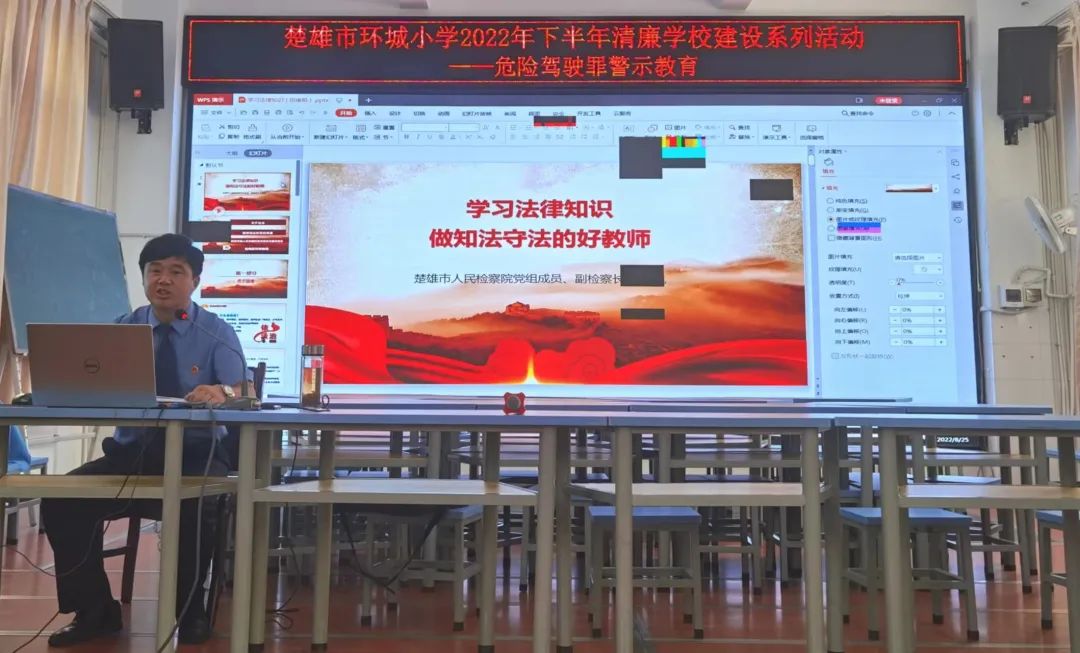 8月25日,正值中小学秋季学期开学之际,楚雄市人民检察院副检察长、环城小学法治副校长田维凯应邀为楚雄市环城小学全体教职员工上了一堂以“学习法律知识,做知法守法的好教师”为主题的“开学第一课”。