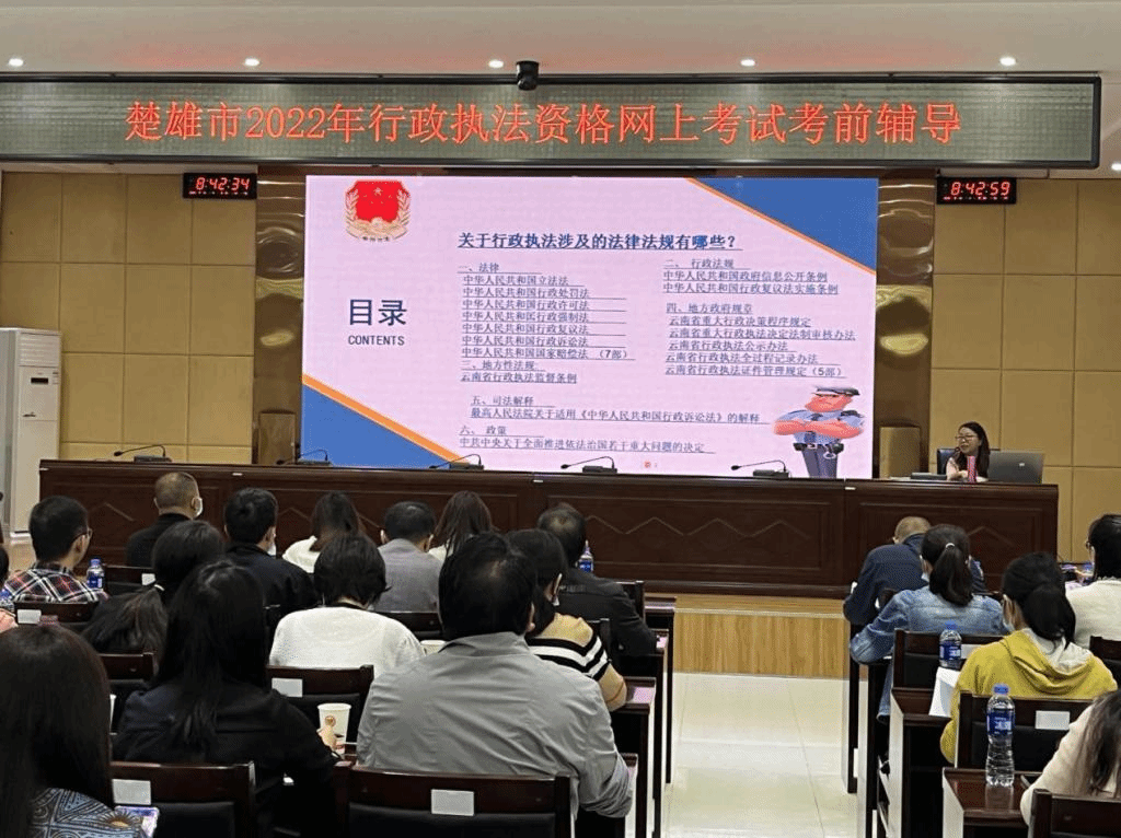 楚雄市严格落实行政执法人员持证上岗和资格管理制度,9月14日至16日,楚雄市司法局聘请楚雄市培训机构老师,组织全市各相关执法单位480名行政执法人员,分4批次开展2022年行政执法人员资格网上考试考前辅导培训,进一步提高行政执法人员的综合法律素质,深入推进法治政府建设。