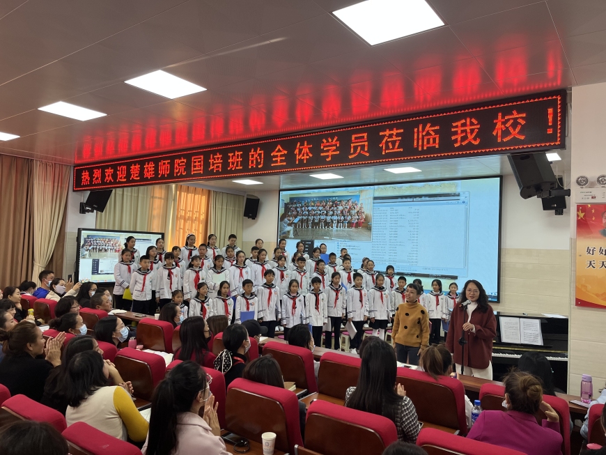 2022年11月21日下午,由楚雄师院承办的云南省“国培计划(2021)”紧缺领域音乐骨干教师专项培训“小学合唱指挥观摩”活动在楚雄市北城小学举行。