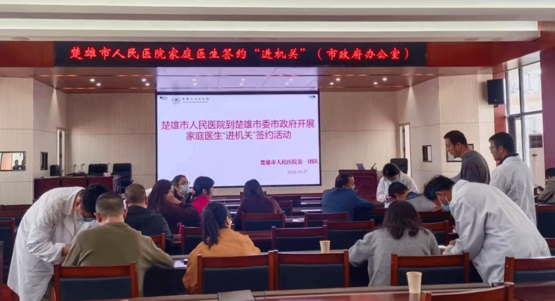 为提升机关干部职工健康管理水平,推动家庭医生签约服务落地见效,10月27日,楚雄市人民医院家庭医生团队走进市政府办公室,开展“家庭医生签约进机关”专项服务,将健康保障送到干部职工“家门口”。