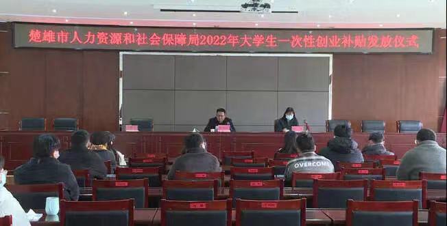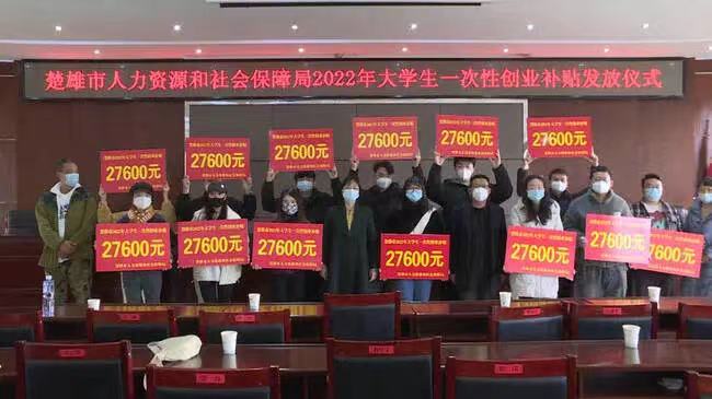 为持续落实好大学生创业帮扶政策,鼓励和支持大学生就业创业,楚雄市人力资源和社会保障局积极践行作风革命效能革命,于12月21日下午举行大学生创业补贴发放仪式,为13名大学生创业者兑现一次性创业补贴共计36万元。