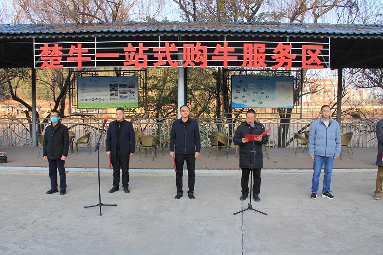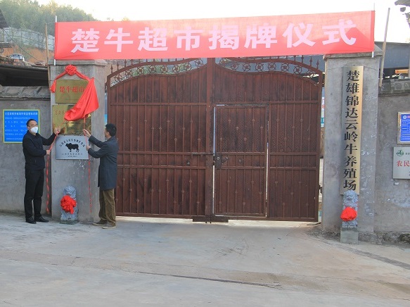 2023年1月17日,楚雄市“树苴牛超市”在树苴乡华兴特色种养殖发展基地揭牌成立,1月19日“楚牛超市”在东瓜镇楚雄锦达云岭牛养殖场揭牌成立,标志着楚雄市肉牛产业“产、供、销”一体化发展体系已经形成。在揭牌仪式上,张正明副市长指出,在推进肉牛产业高质量发展过程中,“肉牛超市”解决好牛从哪里来?从哪里买?卖到哪里去?是肉牛产业发展的关键问题。解决好牛源的问题,能让养殖户进有渠道、出有销路、养有收入,从而实现全市肉牛产业更好更快发展。希望肉牛超市要抓住机遇、勇于担当、敢于创新,认真运作,扩大市场,把肉牛超市经营好、经营出成效,带动更多群众养好牛、卖好牛,切实发挥好联农带农的作用,促进更多的群众通过养牛走上致富之路。