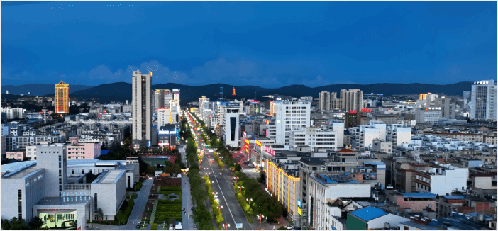 ——精绘蓝图强引领,城市空间格局实现新跨越。紧抓滇中城市群建设机遇,累计实施城市建设项目252个,中心城区“一核两心三轴两圈多节点”格局全面拉开。城市建成区面积从建市时的4.5平方公里扩大到53.51平方公里,城镇化率从62.87%提升到70.83%,滇中城市群西向枢纽地位日益凸显,中心城区辐射带动能力显著增强。