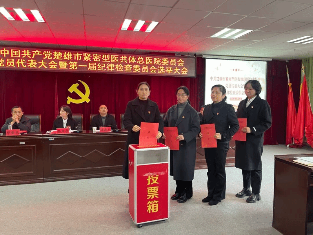 2025年12月19日,中国共产党楚雄市紧密型医共体总医院委员会党员代表大会暨第一届纪律检查委员会选举大会在楚雄市人民医院召开,选举产生第一届纪律检查委员会。