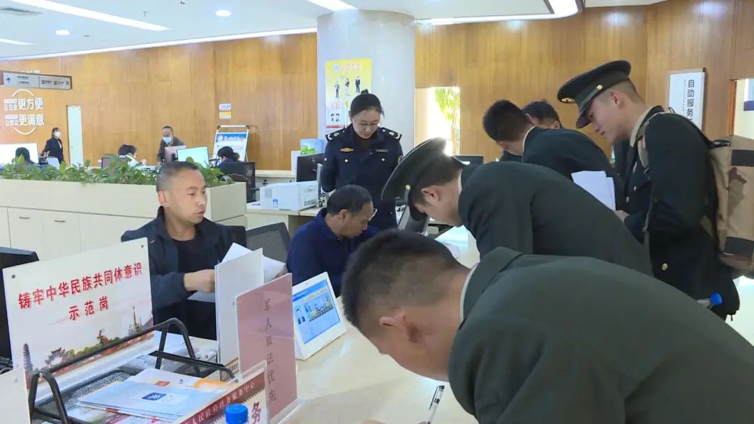 当天,市退役军人事务局组织了简洁而隆重的退役士兵集中报到返乡仪式,对退役士兵返乡落户、保险接续、伤残抚恤关系转移、预备役登记等开展政策宣讲,并在楚雄市政务服务中心大厅一楼,设置了统一受理窗口,按照各业务事项办理要求对申请材料进行初审,实现“一窗受理”,整合涉及多部门事项的共性材料,通过“一件事”主题集成服务表,将退役军人基本信息材料一次性收齐、后续反复使用,减少重复填写和重复提交的麻烦。通过优化办事流程、整合多部门资源,窗口办事效率、服务满意度明显提升,得到了广大退役士兵的一致肯定。