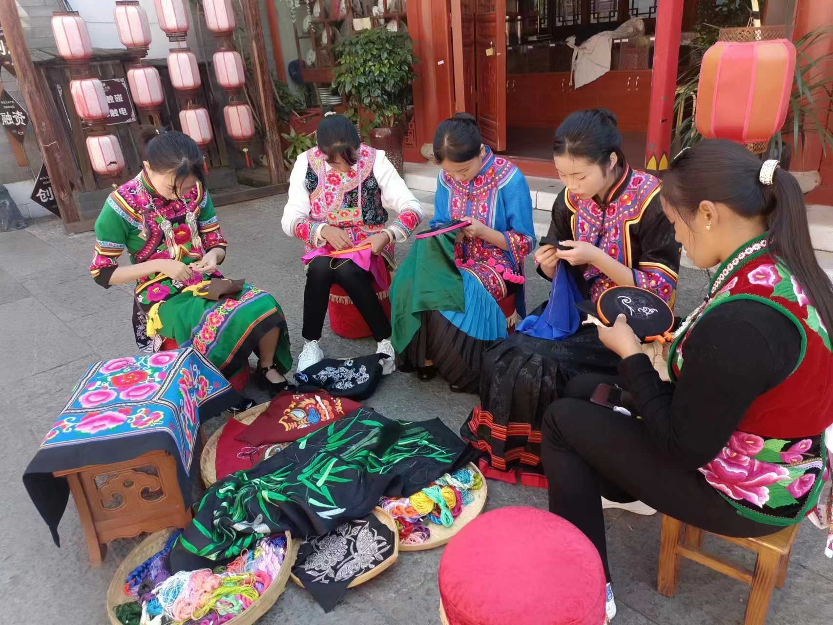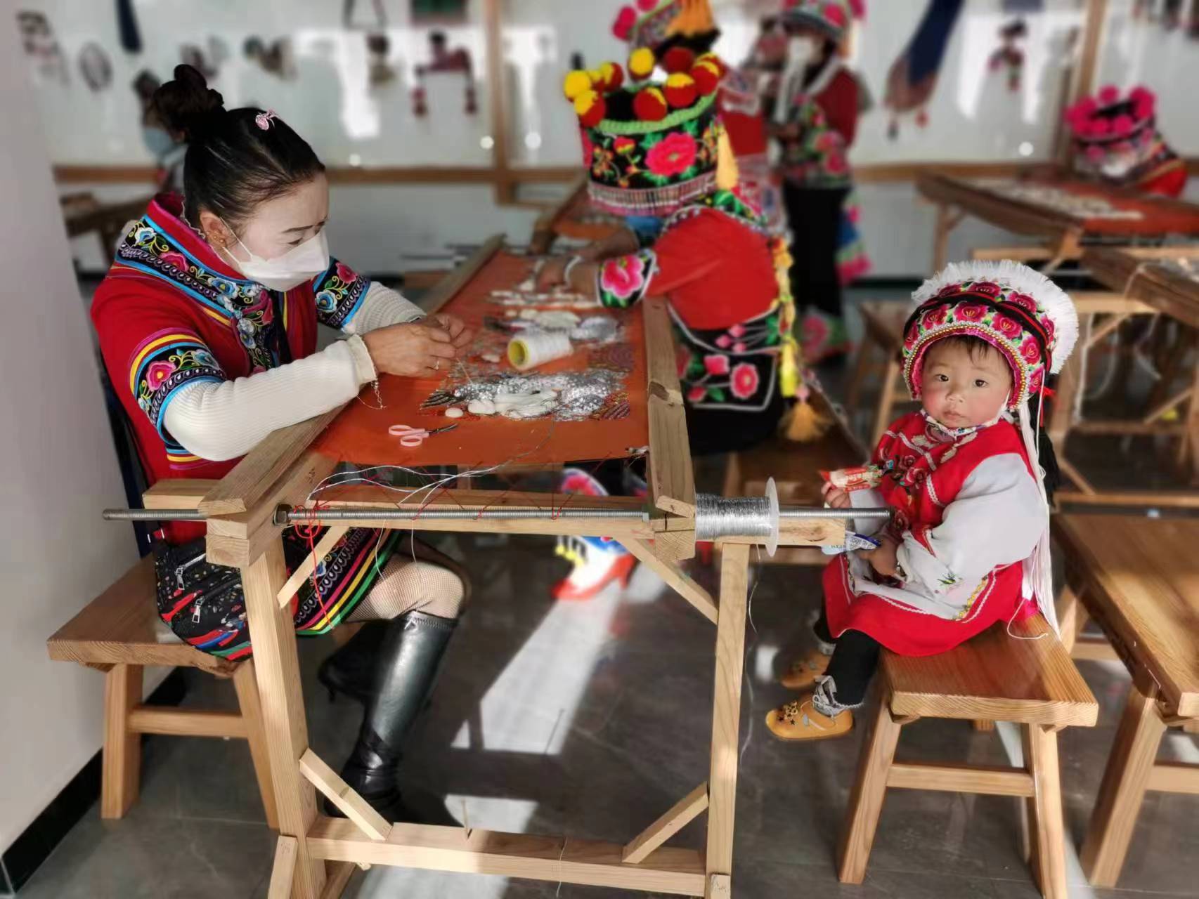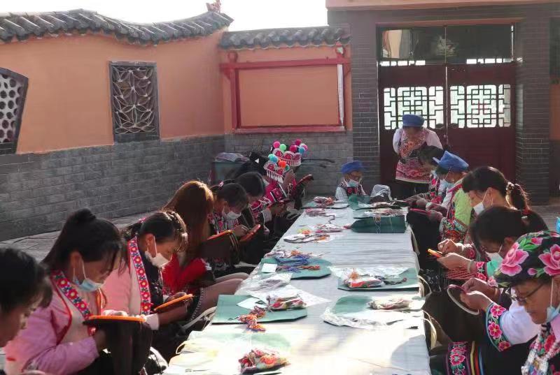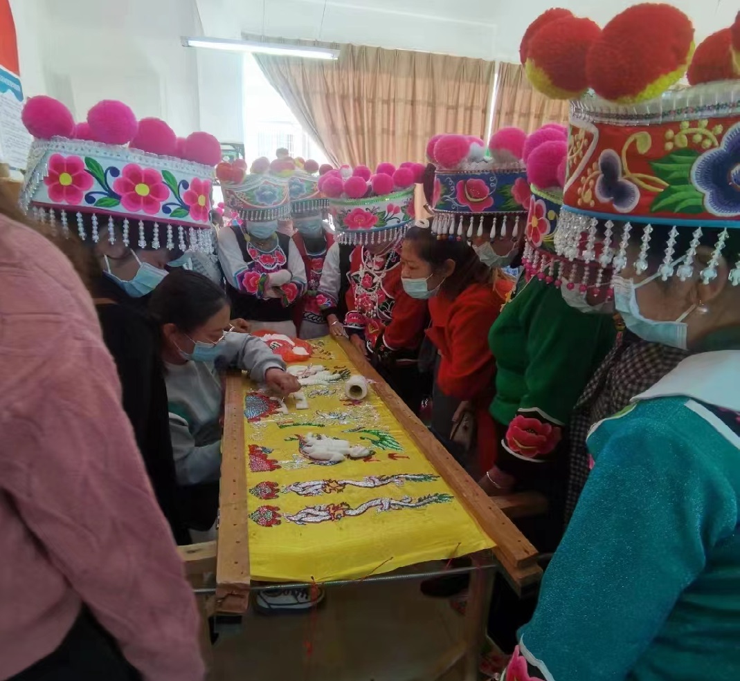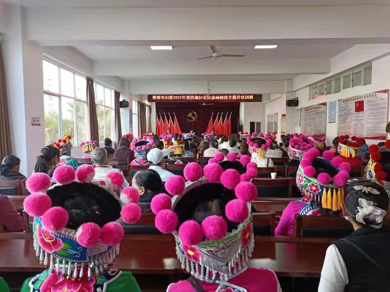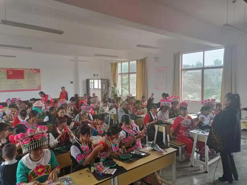 ——做实“培训”文章,为“妈妈”赋能。坚持妇联组织引导与群众自发相结合,采取“协会帮带学徒+传习所定期培训+订单式送技培训”的模式,为“妈妈”赋能,让指尖技艺“活”起来,变成“指尖经济”。充分发挥民族文化资源优势,深挖彝族刺绣产业发展潜力,按照州妇联提出的彝绣文化产业巾帼行动,认真践行项目工作法,成立彝绣产业工作专班,建立彝绣产业协会、“彝族刺绣”传习所,全方位、多层次开展彝族刺绣技能培训。结合“三访四察五送”活动中掌握的绣娘情况,采取彝绣协会引领,绣娘入会的方式,建立“五送”任务清单,以村(社区)为最小单元,依托妇女之家、妇女微家等阵地,以市场需求开展订单式“五送”培训。全面下沉培训资源,把政策、法律、健康、技艺、巾帼致富带头人等请下乡、把培训教材搬进村,在家门口就能让妇女群众了解政策,学到技术,得到关爱,鼓起“腰包”,筑牢了家门口经济基础。目前,共举办彝绣、苏绣、盘金绣等技艺培训班9期,培养出优秀绣娘1200余名,楚雄州民族刺绣非遗传承人12名、高级绣娘70名,云南省手绣制作工高级教师15名,4名专业教师取得国家“手绣制作工”考评员证。