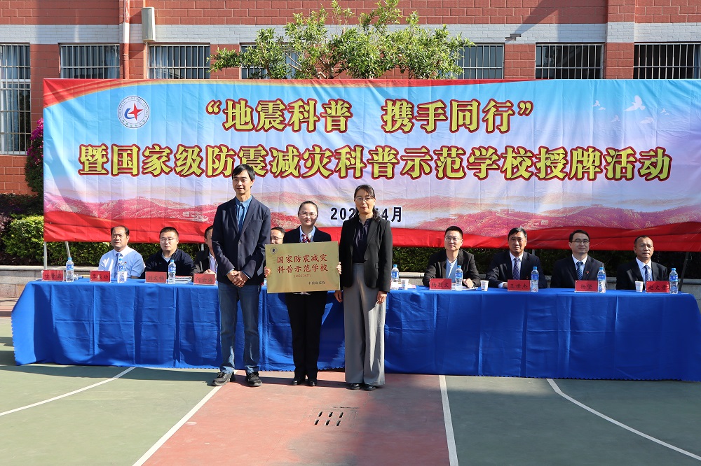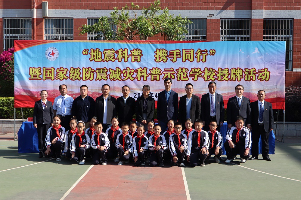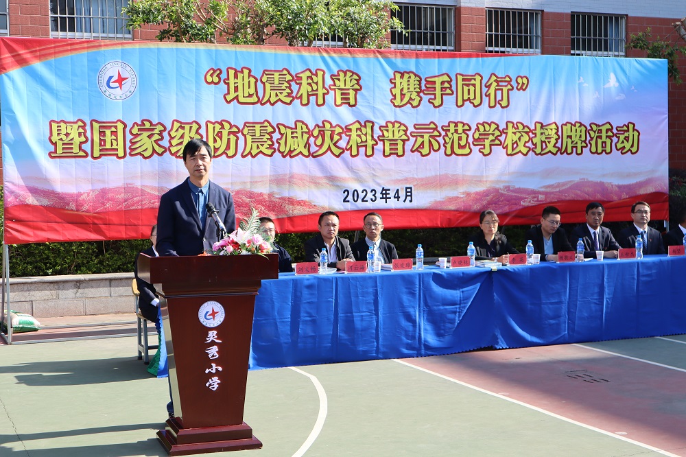 2023年4月6日上午,“国家级防震减灾科普示范学校”授牌仪式在楚雄市灵秀小学举行。楚雄州地震局局长卢晓林、楚雄市人民政府副市长李英等领导及灵秀小学全体师生参加了授牌仪式。楚雄市灵秀小学校长甘清梅主持授牌仪式。