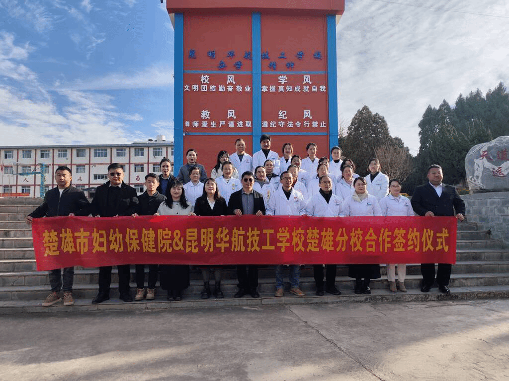 2月2日,楚雄市妇幼保健院与昆明华航技工学校楚雄分校医校合作签约仪式在昆明华航技工学校楚雄分校举行,标志着双方在党建共建、健康保障、人才培养等领域的深度合作正式启动。