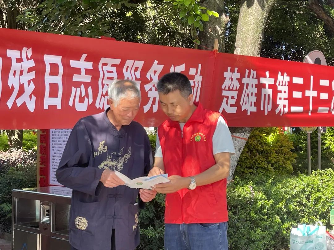 2023年5月21日是全国第三十三次全国助残日。21号上午,楚雄市在桃源湖广场开展“完善残疾人社会保障制度和关爱服务体系,促进残疾人事业全面发展”主题宣传活动,各部门通过多种形式的活动,倡导全社会关爱扶助残疾人,让残疾人真正感到全社会的关心与帮助。