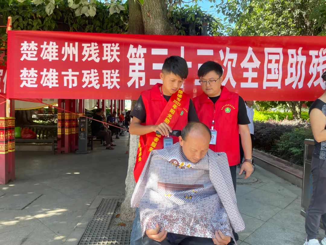 活动现场,楚雄市残联、民政、教育等残工委成员单位开展活动,设置摊位为广大群众提供残疾人政策维权、残疾人创业就业指导、残疾人教育等政策宣传,现场还为残疾人发放轮椅、视力检查、健康咨询、理发、提供助听器适配、假肢矫形等免费义诊服务。