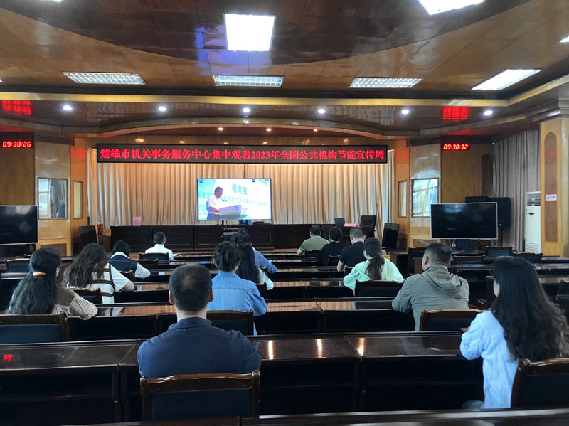 7月10日,楚雄市机关事务服务中心组织单位干部职工通过新华网全程观看2023年全国节能宣传周活动启动仪式。