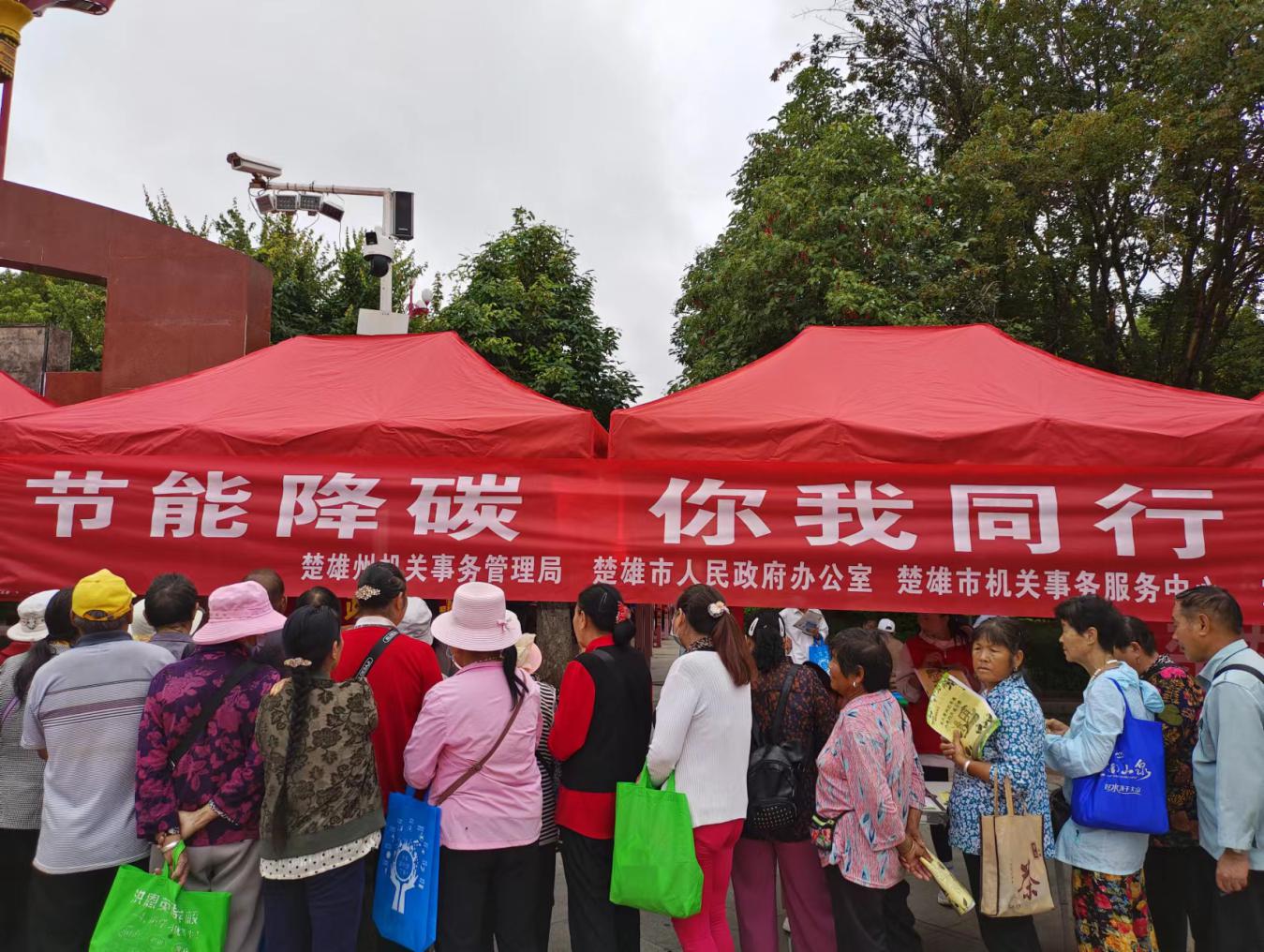 全国节能宣传周活动启动仪式结束后,楚雄州机关事务管理局、楚雄市人民政府办公室、楚雄市机关事务服务中心共同在楚雄市桃园湖体育公园围绕“节能降碳、你我同行”主题开展2023年全国节能宣传周和全国低碳日集中宣传活动。