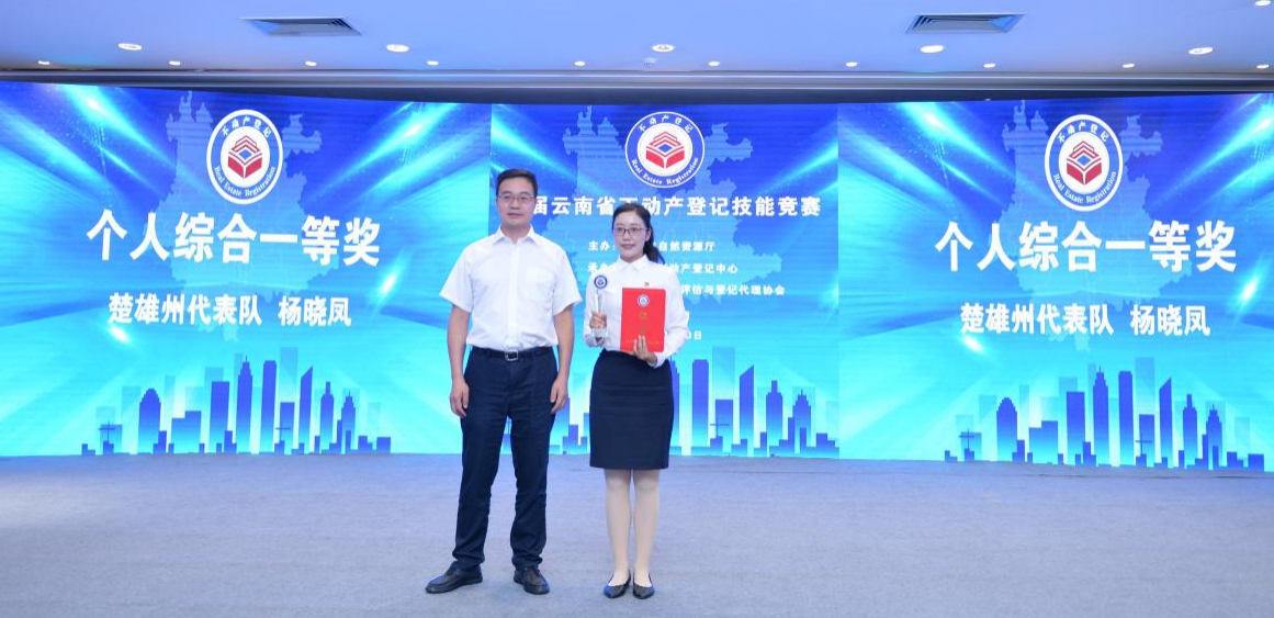 8月9日-8月10日,云南省首届不动产登记技能竞赛省级决赛在昆明成功举办。来自全省16个代表队共计64名选手参加决赛,经过两天的激烈角逐,楚雄州代表队荣获团体三等奖,楚雄市不动产登记中心杨晓凤同志荣获“个人综合奖”一等奖,充分展示了新时代楚雄不动产人的风采与担当。
