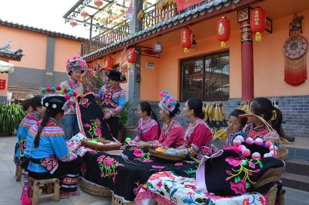 发展彝族传统刺绣。举办刺绣技能培训班,成立刺绣协会和刺绣小组,组织开展妇女刺绣能手交流、彝族绣品展示等活动,依托村里的“农家乐”、紫溪山风景区展销部、州妇联彝绣展销部、楚雄彝人古镇旅游区等窗口销售绣品,户均年增加收入1000元。