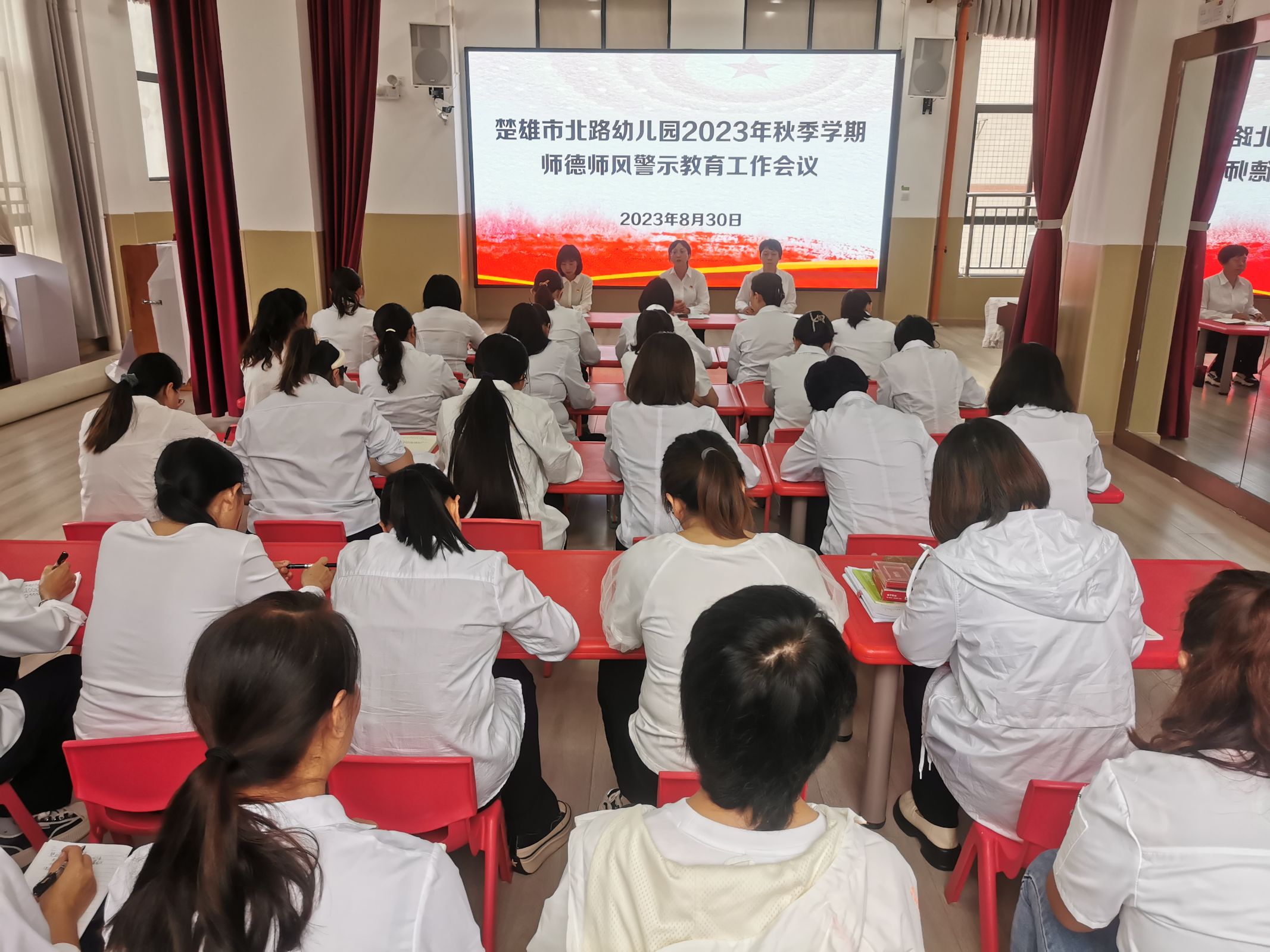 8月30日,楚雄市北路幼儿园组织全体教职工召开了2023年秋季学期师德师风警示教育工作会议,进一步强化幼儿园师德师风建设,培养高素质教师队伍,提高教师政治素养和职业道德,树立良好的师德形象。
