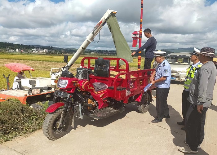 当前正是秋收、秋耕、秋种的关键期间,大量农业机械集中投入使用,农民群众和机手出行及农业机械运输频繁,是农机事故的易发、多发期。为确保“三秋、亚运会、国庆节”期间农机安全生产,楚雄市乡农机执法人员强化红线意识和底线思维,针对辖区内重点时段、重点路段和重点秋收秋种作业区域,抓实农机安全生产责任落实。