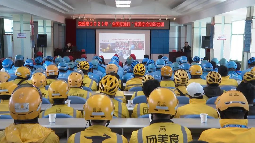 2023年11月15日,楚雄市市场监管局联合交警部门组织开展网络送餐“骑手”食品及文明交通安全培训。美团、饿了么、UU跑腿、顺风同城、彝州阿老表、宅急送的一百五十名外卖骑手参加了培训。
