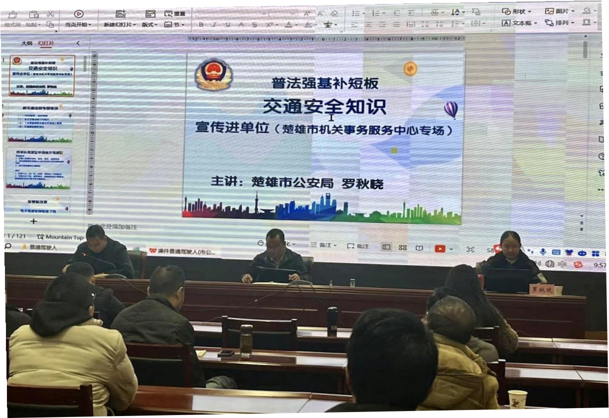 为进一步规范公务用车安全管理,增强驾驶员交通安全意识,切实保障公务用车安全出行,1月2日上午,楚雄市机关事务服务中心组织召开了2024年道路交通安全培训暨第一季度安全生产工作会,市机关事务服务中心职工、市公务用车综合保障平台和楚雄市数字科技发展有限公司全体驾驶员共40余人参加培训。