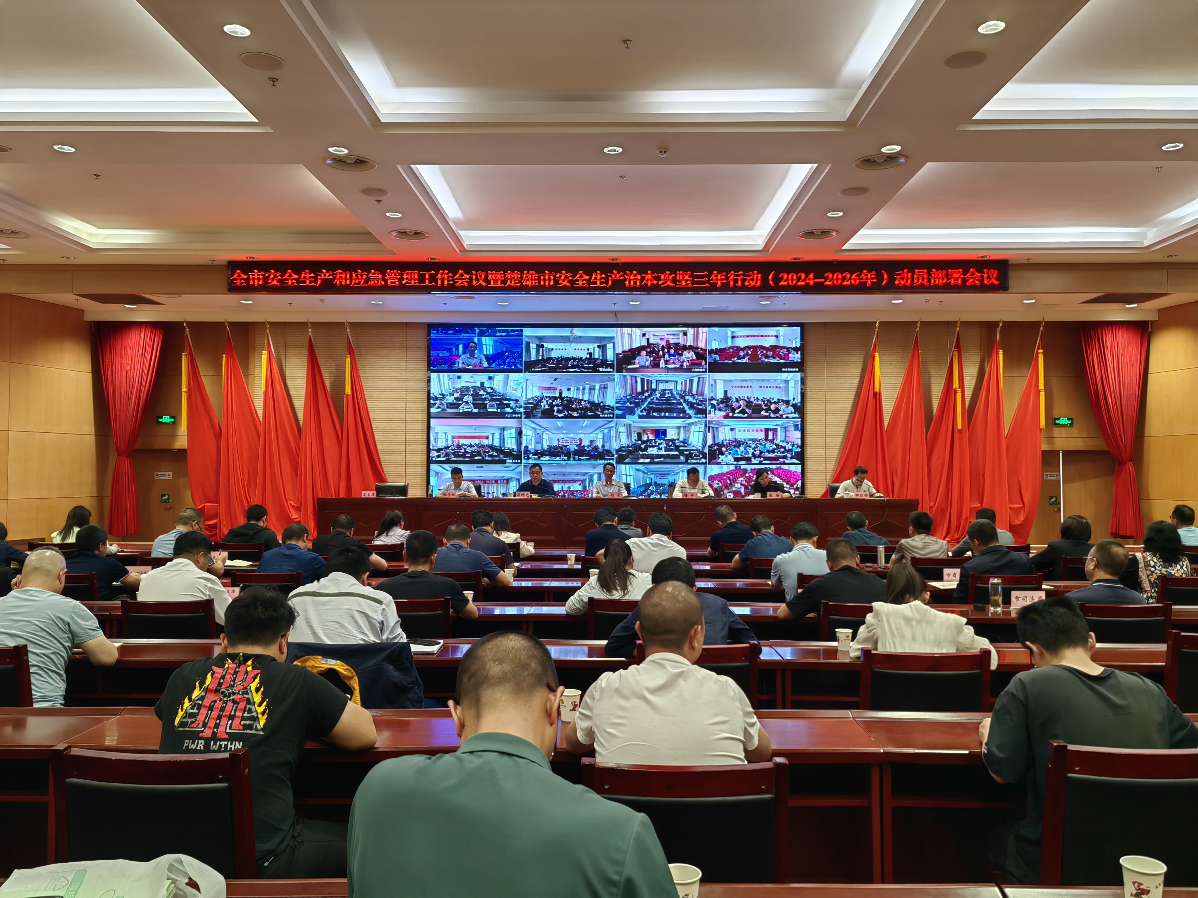 2024年4月12日,楚雄市召开安全生产和应急管理工作会议暨楚雄市安全生产治本攻坚三年行动动员部署会议。顾平、杨洋、周增先、张梅、张学权、田红锦出席并作工作安排。