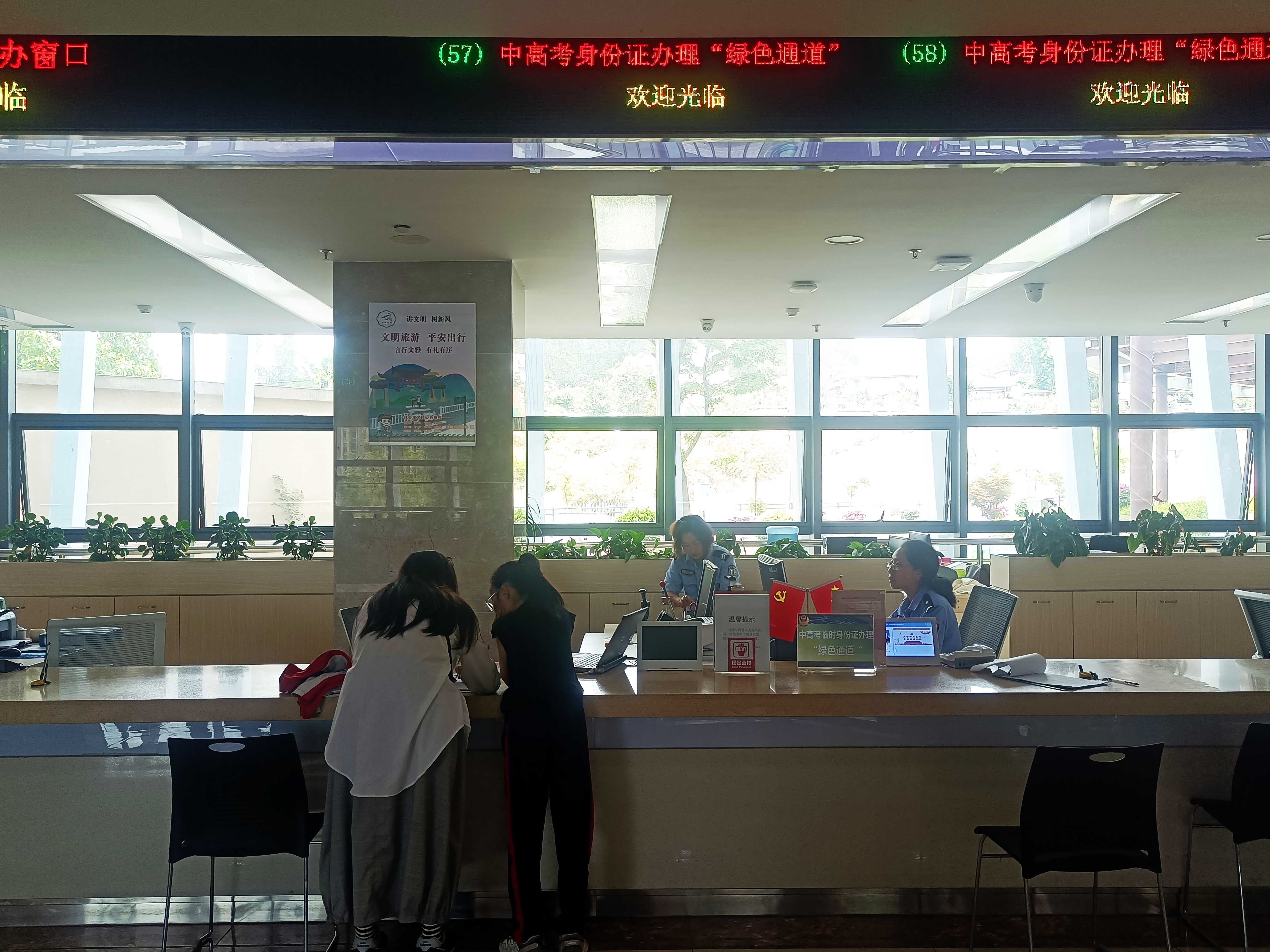 ——设立考生服务专窗。在市政务服务中心一楼公安服务区设立中高考身份证办理“绿色通道”,设置醒目提示引导标志,为考生提供快受理、快审核、快制证及快邮递等便捷服务,节省考生排队等候时间,同时做好加急证件的窗口登记、审核、签发、上传等工作,确保“绿色通道”一路畅通。