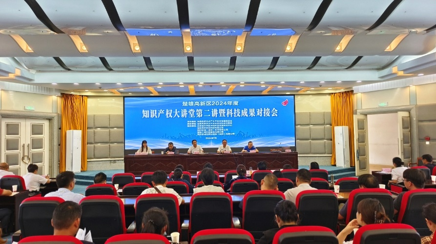 2024年7月4日,楚雄高新区“2024年度知识产权大讲堂第二讲暨科技成果对接会”成功举办。会议由楚雄高新技术产业开发区管理委员会主办,楚雄高新技术产业开发区科技创新局承办,云南省科学技术院科技成果转化中心、楚雄高新领创科技有限公司、国科新创(楚雄)科技有限公司、楚雄八戒科技服务有限公司、商投启点空间创业园(云南)有限公司协办。楚雄州科学技术局三级调研员段青、楚雄州市场监督管理局一级主办李河山、省科学技术院科技成果转化中心朱新祥主任出席会议,楚雄高新区党工委副书记吴炬出席会议并讲话。来自江南大学、昆明理工大学、楚雄医药高等专科学校、楚雄彝族自治州彝族医药研究院等高校、科研院所,高新区相关局(中心)、园区企业知识产权工作负责人共80余人参会。
