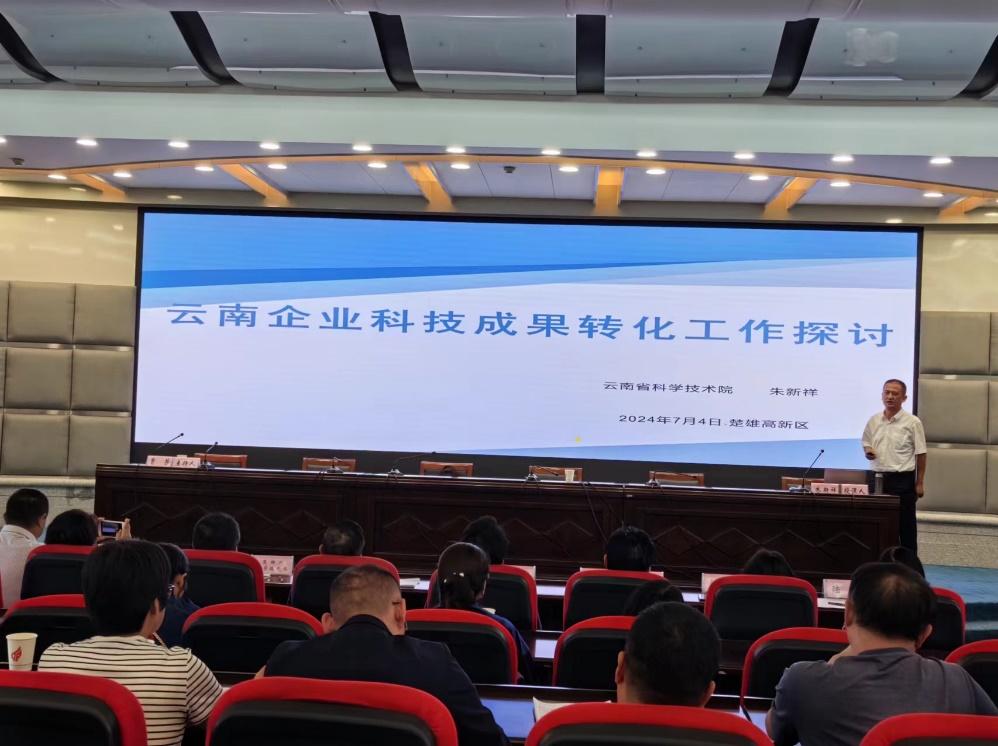 会上,朱新祥主任进行科技成果转化专题讲座,从科技成果转移转化的定义和转化方式、云南省科技成果转移转化工作目前存在的主要问题、关于云南企业科技成果转化工作的思考三个方面进行讲解。