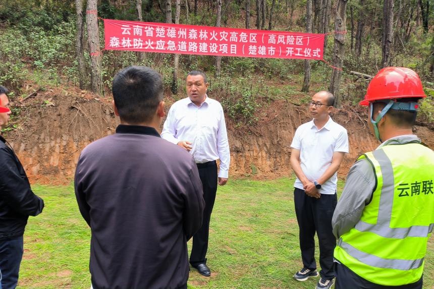 近日,楚雄市森林火灾高危区(高风险区)森林防火应急道路建设开工仪式在叫阴山举行,市人民政府党组成员王明辉,市林草局、市发改局、市财政局、市自然资源局、市水务局、楚雄公路局有关领导,涉及项目的乡镇人民政府分管领导和林草服务中心主任,项目设计单位、施工单位代表共计50余人参加活动。