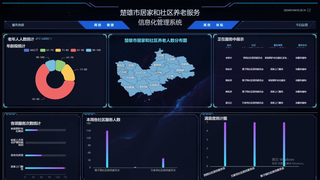创新智慧养老服务。建成楚雄市智慧养老服务指挥调度中心,探索开发“楚雄市老年人能力评估服务APP”,打造全市智慧养老“电子地图”,将养老机构专业服务资源向社区、家庭延伸。