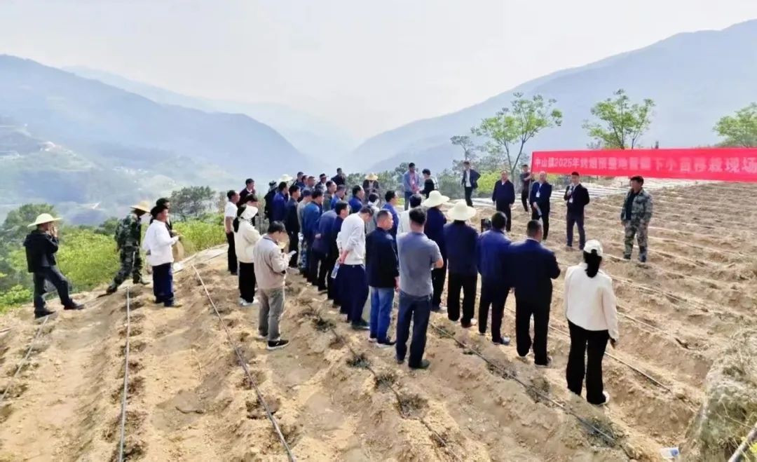 近日,在中山镇中山村阿旧姑小组杨厚昌的烤烟地里,一场别开生面的烤烟移栽培训会正火热进行。镇党政班子成员、各村党总支书记、村委会主任、烟农代表、科技承包员、合作社负责人等60余人齐聚田间,观摩标准化烤烟移栽操作流程,交流种植经验。这场开在田间地头的现场会,既是技术培训,也是春耕动员,吹响了全镇烤烟生产“早谋先动”的号角。
