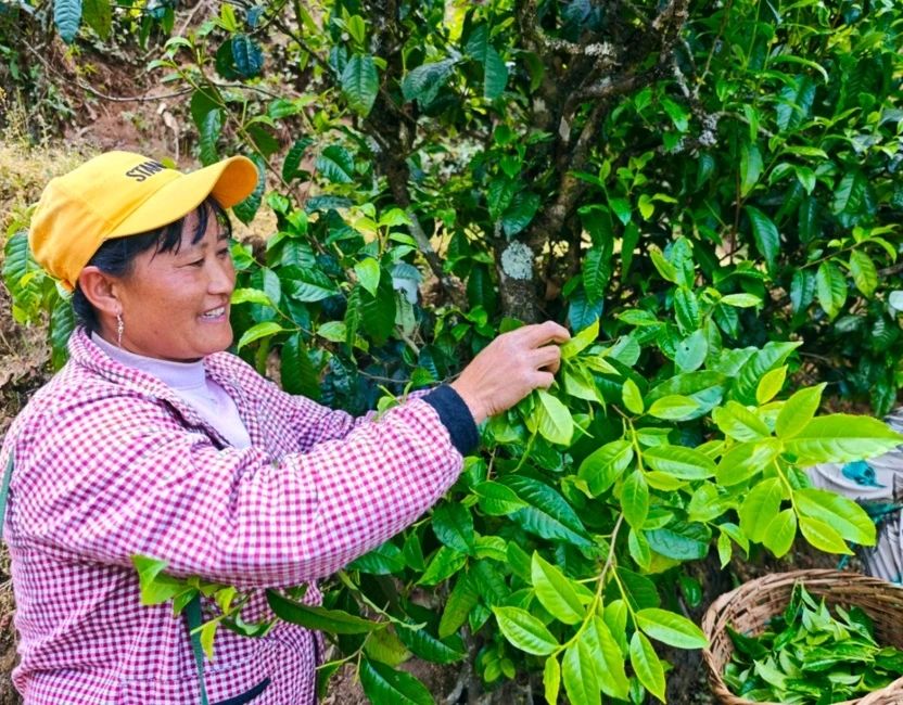 晨曦初照,茶山宛如一块嫩绿的绒毯铺展在山间。4月,在哀牢山腹地云南省楚雄彝族自治州楚雄市西舍路镇海拔2000多米的山坡上,成片的古茶树,清香馥郁。一株株古茶树在云雾间吐出肥硕的新芽,茶农们腰挎竹篓,指尖翻飞,忙着采摘春茶,一幅人勤春早的画卷在一座座茶山徐徐展开。