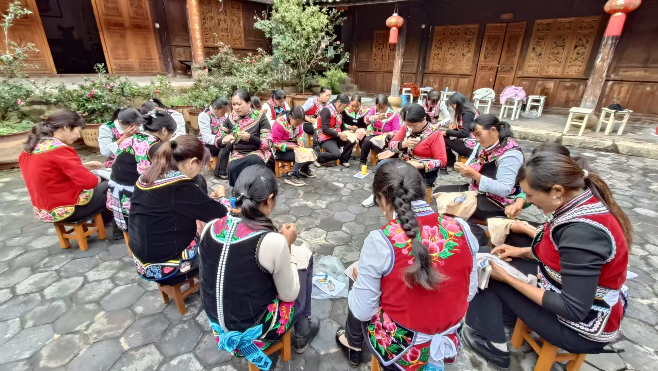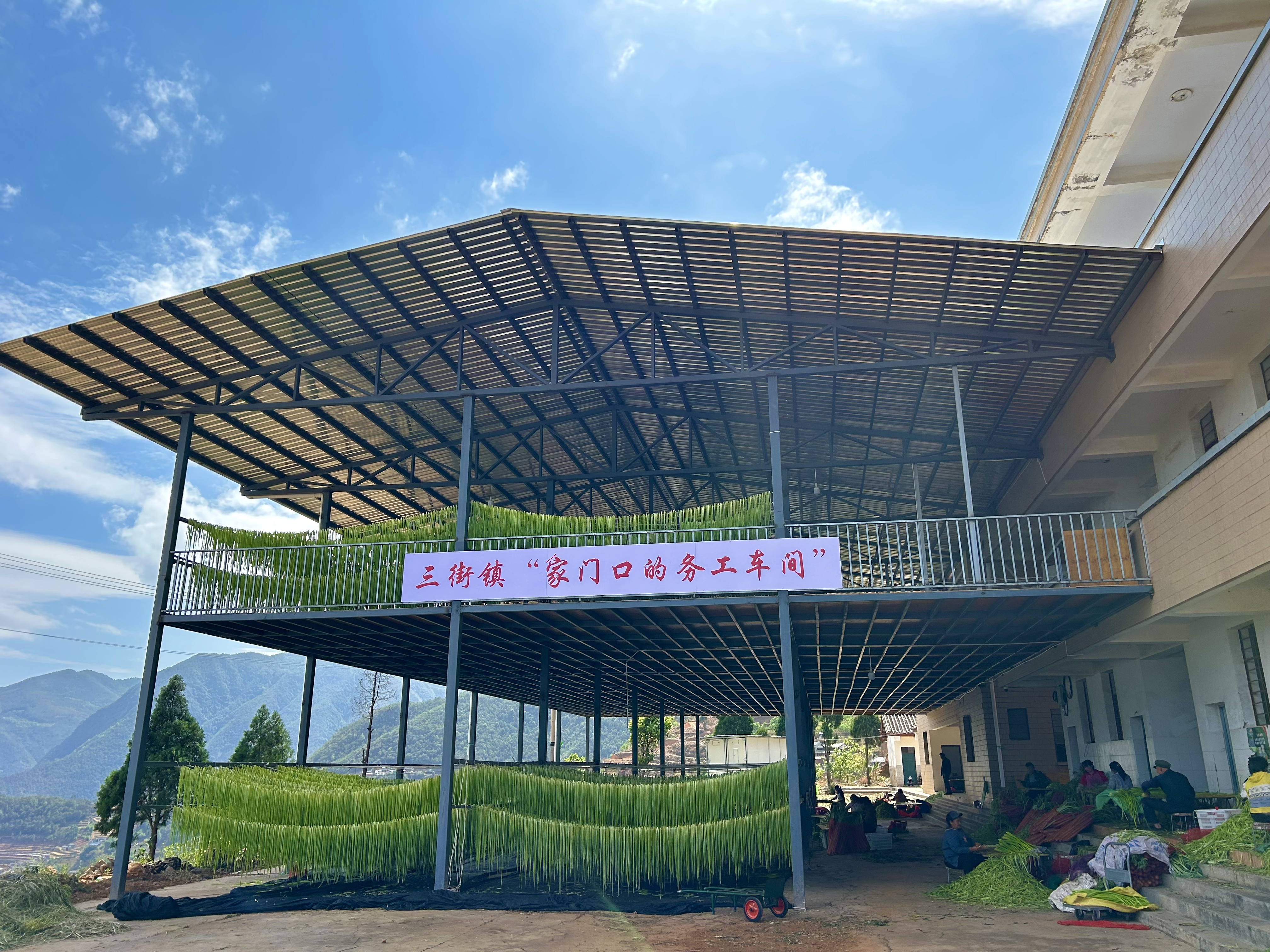 聚焦资源禀赋兴产业,依托茶叶、彝绣等特色资源,采取“乡镇办车间+乡村办小厂+家庭办作坊”三级联动模式,推动产业向镇村延伸。一是茶产业全链条赋能。以蚂蝗箐茶厂为核心,打造“种植+加工+销售”一体化链条,辐射带动周边4个村委会100余名剩余劳动力参与到500余亩茶园管理、采摘、加工等全链条全过程,年发放工资70余万元。二是“指尖经济”灵活创收。依托2个州市级彝绣工坊,推行“集中+分散、计件+奖补”模式,实现务工时间、地点、产量“三个自由”,有33名专职绣娘、500余名流动绣娘“带着娃、绣着花、养着家”,年产绣片1.2万件,带动385户家庭增收40余万元。通过扶持壮大“小而特、小而精”产业,延伸产业链条,实现群众“务工顾家两不误”,产业发展与群众增收同频共振。