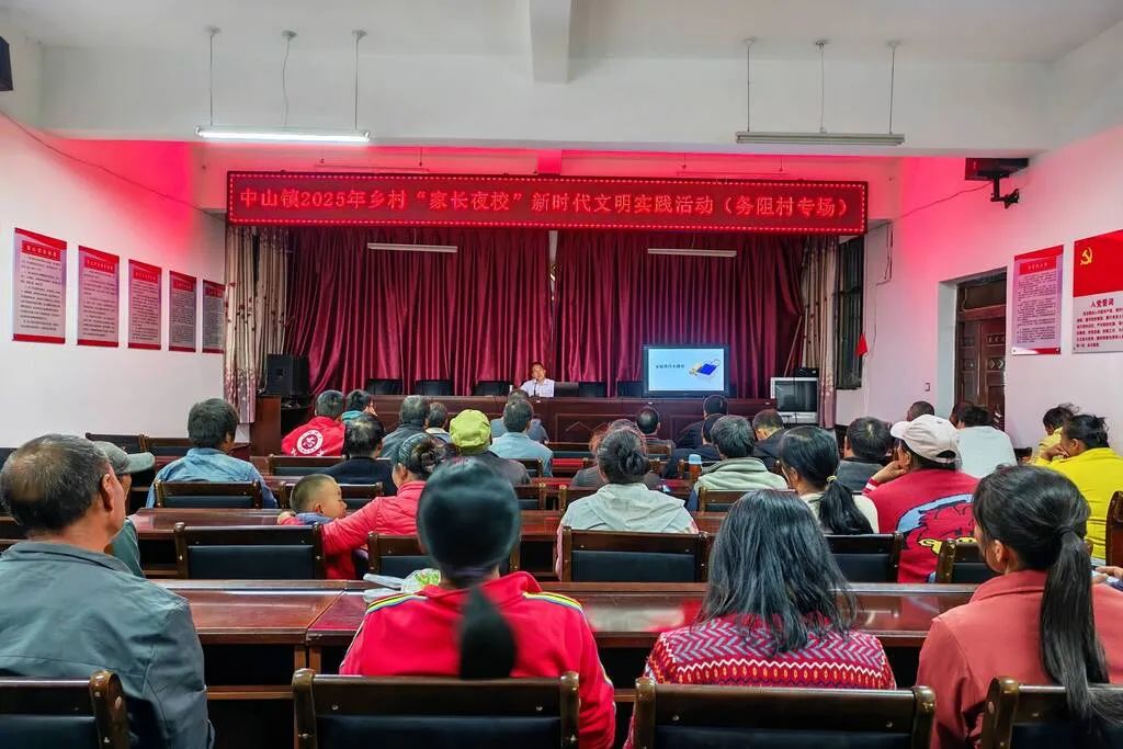 近日,中山镇务阻村委会的会议室灯火通明,一场别开生面的乡村“家长夜校”新时代文明实践活动吸引了近50名村民参与。作为新时代文明实践活动的重要载体,中山镇整合教育资源、创新服务形式,构建“政策宣讲+技能培训+文明倡导”三位一体的乡村教育模式,进一步提升村民素质,推动乡村文明建设。