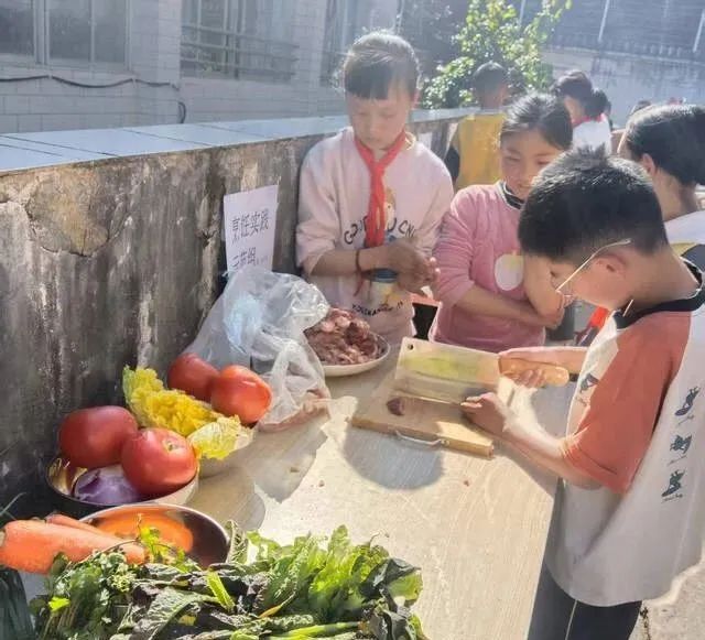 趣味实践激发潜能,生活技能巧妙习得。学校创新开发了“生活数学”融合课程,将重量换算、成本核算等知识融入烹饪实践。学生们在烹饪过程中不仅学会了食材的精准称量、成本的初步核算,还体会到了数学的实用性和趣味性。此外,学校还巧妙地将烹饪与传统文化相结合,让学生在制作家乡特色美食的过程中,加深对本土文化的理解和认同,培养了他们的文化自信。“番茄炒鸡蛋盐量误差不超过2克”已成为六年级学生的基本操作标准。