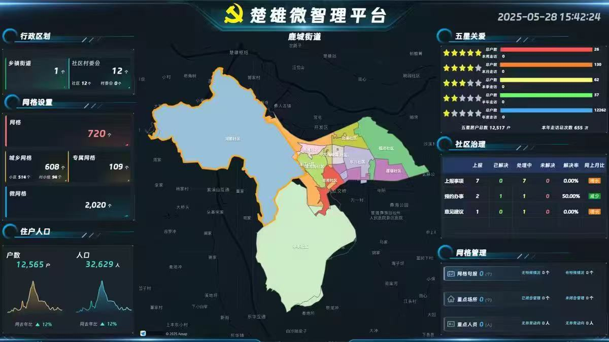 ——网格管理精细,基层“智理”提质。“楚雄微智理”平台的创新应用,实现了鹿城基层治理的智能化、精细化和高效化。街道运用数据平台,按照网格化精细管理的原则,对辖区进行网格划分,实现片网脉络清晰、格内事项明了。通过对平台数据的实时观察和分析,可及时发现网格存在的问题和潜在风险,提前进行干预和处理,有效提升社区治理的精准度和预见性。