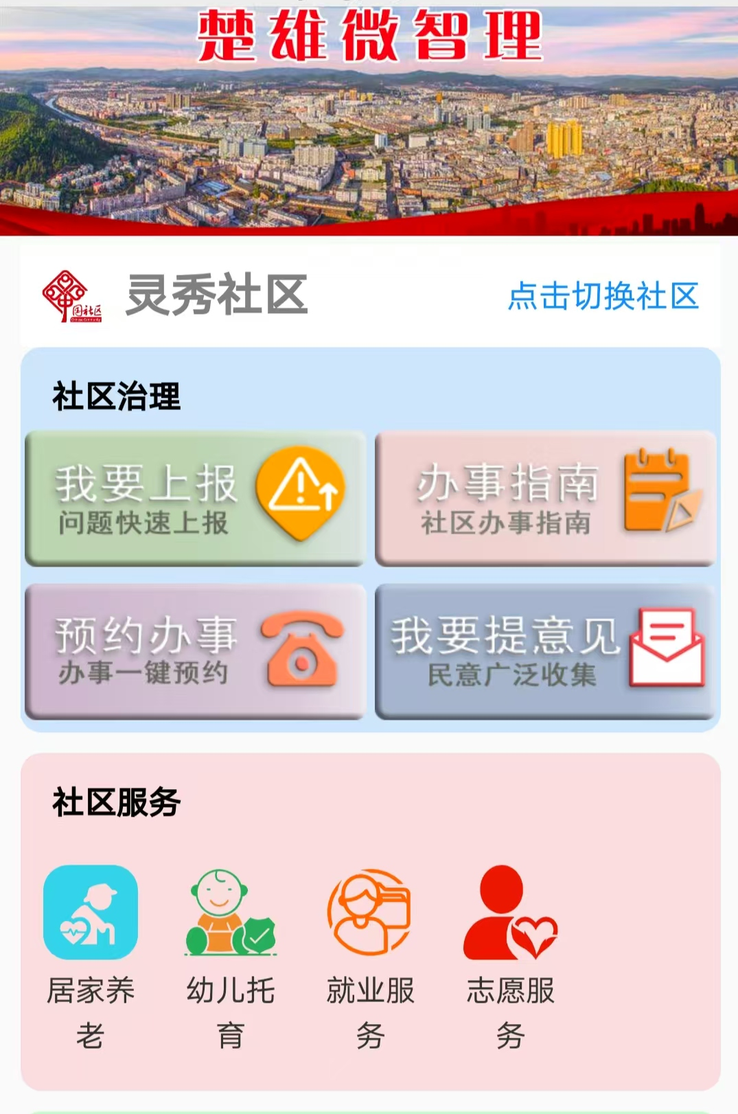 ——服务是基础,解决问题是关键。在“楚雄微智理”居民端,“我要上报”“预约办事”“我要提意见”等版块吸引了不少居民群众。