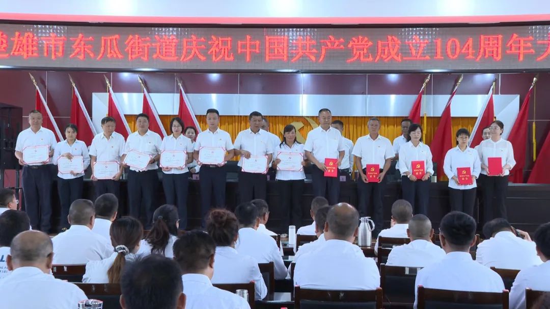 6月30日,楚雄市东瓜街道举行庆祝中国共产党成立104周年大会,4个先进基层党组织、51名优秀共产党员、13名优秀党务工作者受到表扬。