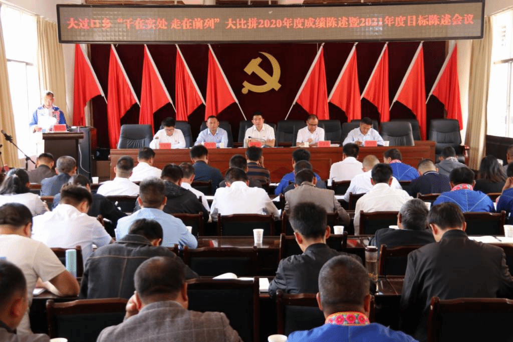 6月7日上午,大过口乡召开“干在实处,走在前列”大比拼2020年度成绩陈述暨2021年度目标陈述会议,对2020年度大比拼目标完成情况以及2021年度大比拼目标、采取的主要措施等内容进行了陈述。乡党政班子成员、全体干部职工、上划站所负责人、各村“四职”干部、各村第一书记(工作队长)共计97人参加了会议。