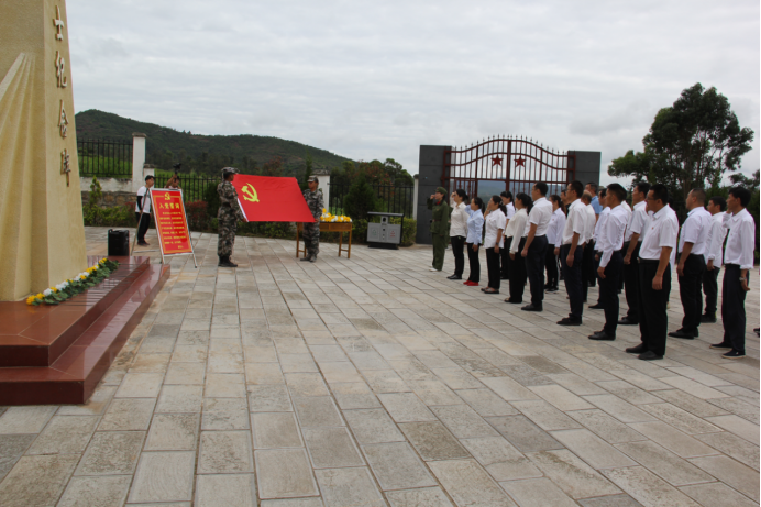 在云龙烈士陵园,全体党员在烈士纪念碑前列队肃立、奏唱国歌、敬献菊花、行鞠躬礼,重温入党誓词。