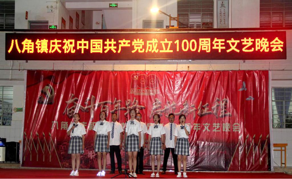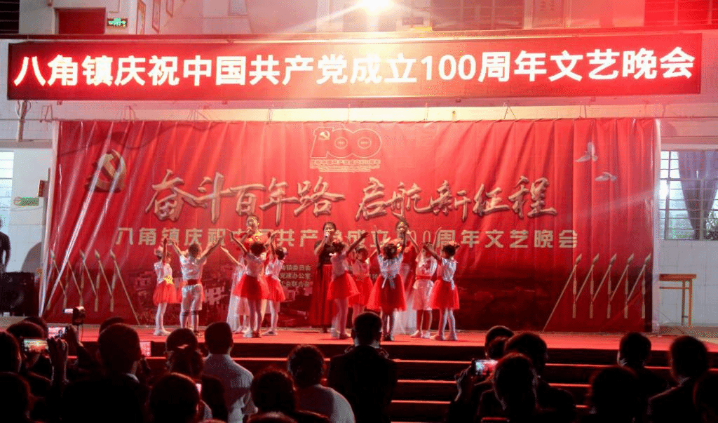 为热烈庆祝中国共产党成立100周年,八角镇正在陆续开展庆祝中国共产党成立100周年系列活动。6月28日晚,八角镇举办“奋斗百年路 启航新征程”文艺晚会,18个精彩纷呈、形式多样、亮点突出的节目,深情回顾了党的百年奋斗历程,热情讴歌党的百年丰功伟绩,充分展示八角人民爱党、爱国、爱社会主义的热情和昂扬奋进的精神面貌。