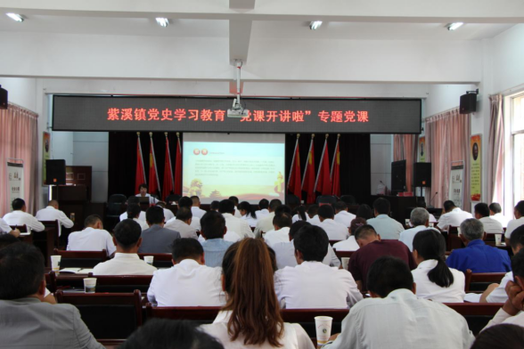 集中讲授一次主题党课。在中国共产党成立100周年紫溪镇“两优一先”表彰大会上,镇党委书记为全镇广大党员干部讲授了一堂专题党课。同时,镇党政领导班子成员在“七一”建党节期间分别到所在党支部和联系村(社区)党总支上一堂专题党课,各党(总)支部书记结合实际,带头讲了一次党课。