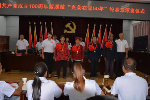颁发“光荣在党50年”纪念章。精确统计辖区内党龄达到50年、一贯表现良好的老党员,做到全覆盖、不遗漏,镇党政班子成员与基层党组织同志上门为43名老党员颁发“光荣在党50年”纪念章,聆听老党员讲红色故事,共同品读峥嵘岁月、回顾家乡发展、感悟思想伟力,增强了老党员的自豪感、荣誉感,强化了基层党员的使命意识。