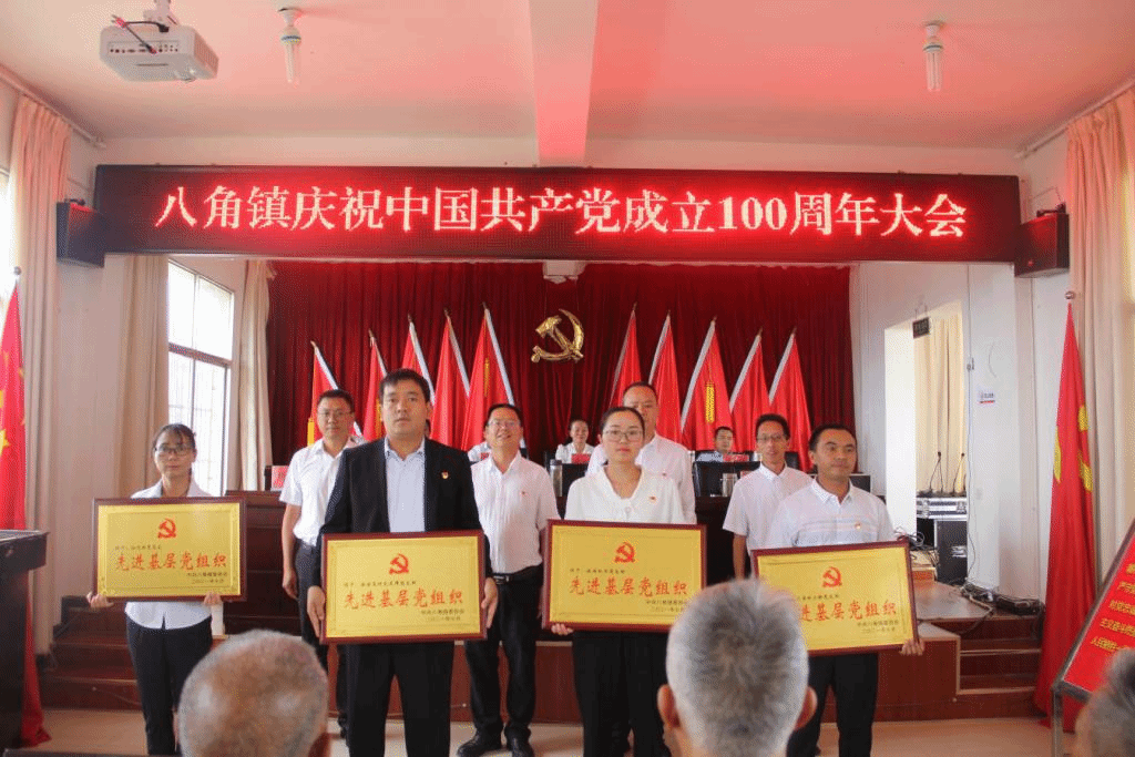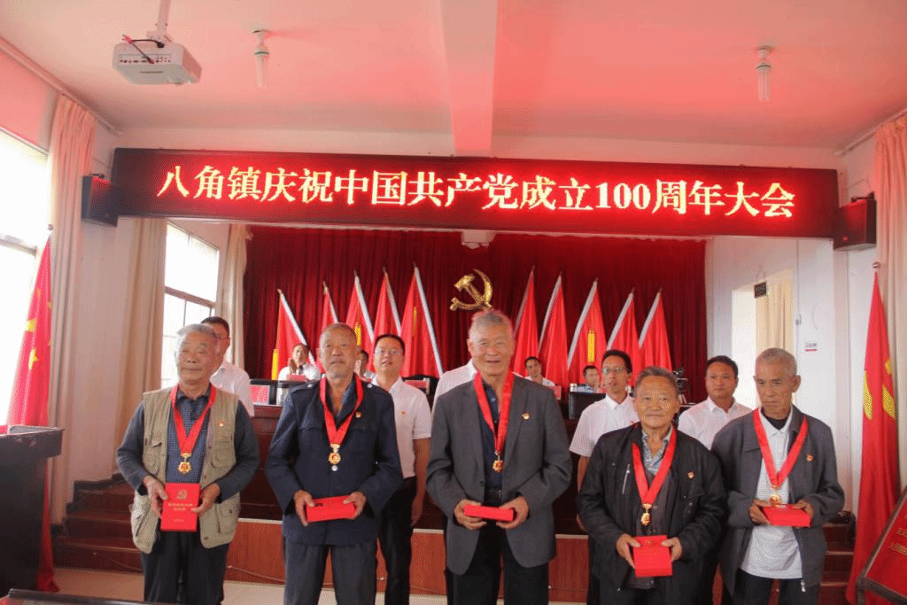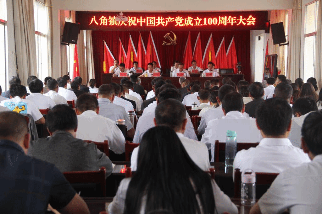 2021年7月1日下午,八角镇组织镇机关站所全体干部职工,各村“三职”、村监委主任和第一书记,上划站所负责人,党龄达到50周年的老党员代表,受表扬的优秀共产党员、党务工作者、农村党员致富先锋及先进基层组织负责人,共114人,会议由镇党委副书记、镇长张勇主持。