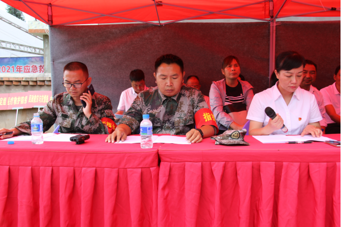 演练开始,各部门按照应急预案和本次演练方案,按层级分属地管理和行业管理进行险情上报,镇人民政府镇长、应急演练指挥长李俊及时向市人民政府副市长、应急演练总指挥长李英报告,李英接到险情报告后,立即启动《子午镇突发性地质灾害应急预案》,下达紧急撤离命令,并要求各应急队伍迅速集结,全力以赴做好群众疏散转移工作。