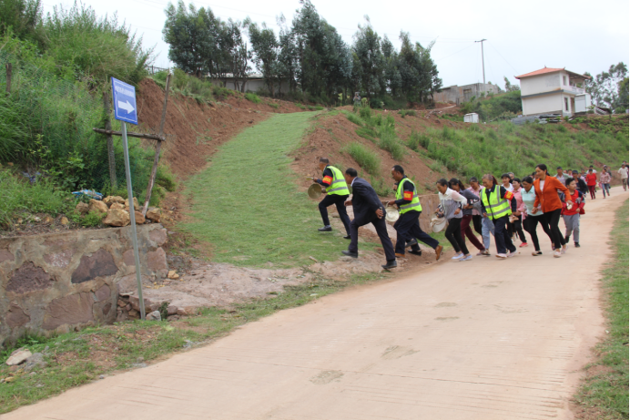 监测员敲击铜锣进行预警,全体成员密切配合,各司其职,迅速开展群众转移、疏散、抢险、救援等工作,有序将受“威胁”群众按计划路线撤离至安置点。派出所封锁道路,指挥车辆转移群众,安监办设置安全标识及警示牌,水利、电力、通讯、交通、林业等部门迅速赶赴灾区,对灾区公用基础设施进行排查抢险,并组织人员对水沟和滑坡土石方进行清理,卫生院工作人员对受伤群众进行及时救治和消毒防疫,民政部门认真组织开展灾情统计和救灾物资的发放,妥善安排避险和受灾群众的生活。