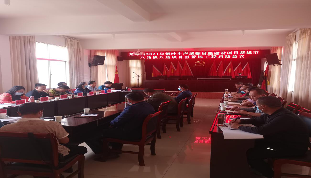 近日,楚雄州2021年烟叶生产基础设施建设楚雄市八角项目区管池工程启动工作会议在八角镇召开,镇党委书记刘天阳、镇人民政府镇长张勇、镇分管管池工程副镇长汪华章、州烟草公司胡伟、市烟草公司杨文松、工程的施工方、监理方、设计方有关负责人,八角镇相关站所负责人,涉及该工程的五个村委会主任等出席会议。