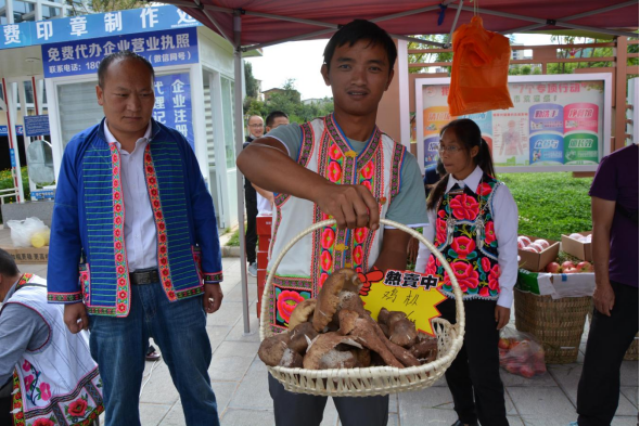 母掌山窝鸡、母掌山窝蛋、紫金蜂糖梨、紫金雪桃、火把梨、脆柿、软籽石榴、万寿菊花蜜、胡宗箐山药、百合、火腿、核桃、谷花鱼、腌鱼、毛豆、土番茄、紫溪竹笋……带有“紫溪山”标签的优质农特产品应有尽有,琳琅满目的绿色生态优质农特产品让广大市民大饱眼福和口福,竞相购买。