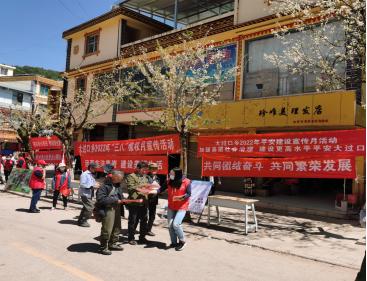 3月12日,由政府牵头组织乡行政审批和综合执法局、综治办、经济发展办、派出所、司法所等10个职能站所,利用周五中小学家长接学生放学之际,以设置宣传展板、悬挂宣传标语、发放宣传单和宣传手册等方式,向过往群众宣传平安建设、道路交通安全、农机安全、防火、防盗、防诈骗、妇女儿童保护等知识。