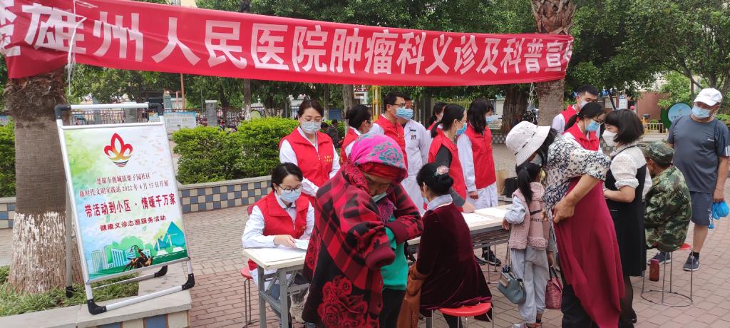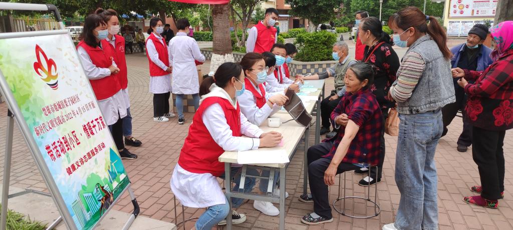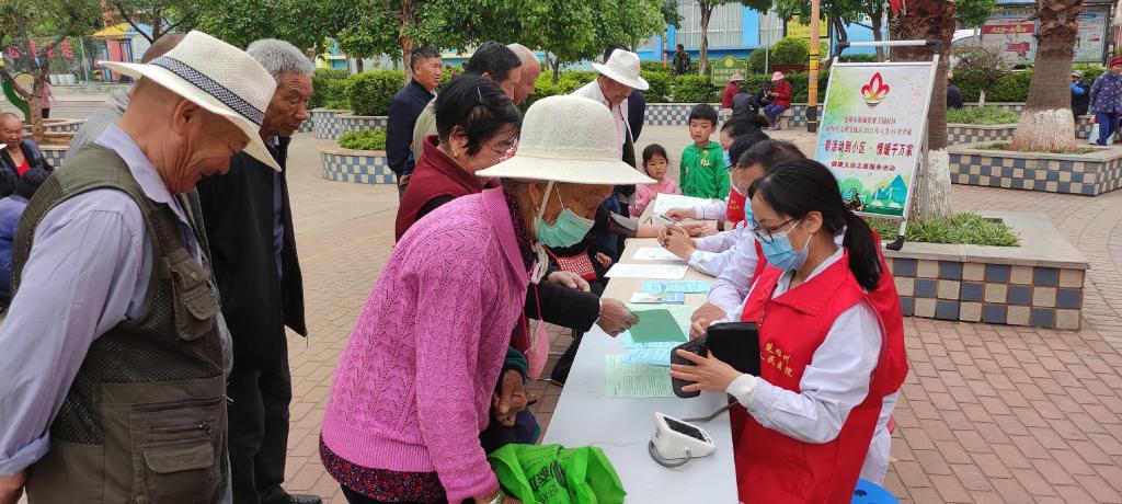 2022年4月15日,楚雄市鹿城镇栗子园社区充分整合社区资源,搭建健康平台,充分发挥新时代文明实践站阵地作用和实践队伍力量,开展了主题为“带活动到小区·情暖千万家”的健康义诊志愿服务活动,让社区居民在“家门口”就能享受到高质量的医疗服务。