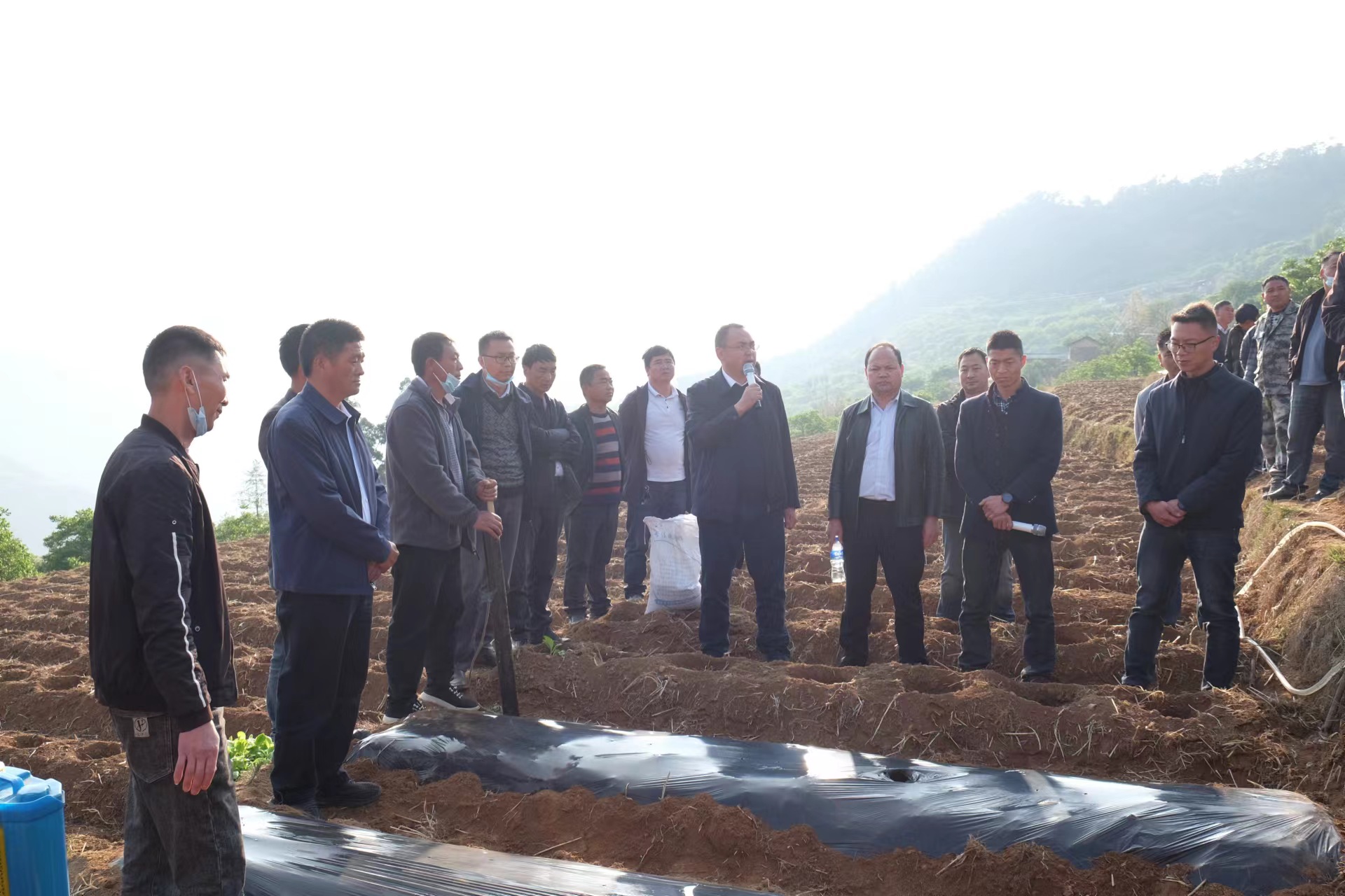 随后,代表们来到务阻村委会麦地心小组烤烟大田移栽现场,现场观摩了拉线理墒、定点打塘、烟苗质量鉴定、膜下小苗移栽等生产环节。移栽现场,烟草专业技术人员从整地、培土、施肥、盖膜、移栽等技术要点进行了全方位讲解,并就栽培技术、中耕管理、平衡施肥、病虫害防治进行了系统培训,确保全体代表深入细致了解和掌握烤烟种植技术要点,以便在下步工作中科学开展指导,进一步提升我镇烟叶生产的规范化、集约化、专业化、商品化水平,助力烟农增收。